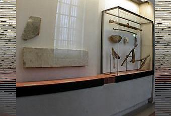 la gauche de la partie supérieure de cette vitrine 9. Gravé en relief dans le creux, ce fragment de calcaire (E 14712) datant du