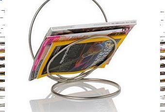 Constitué de quatre anneaux en métal chromé, il peut supporter des piles de magazines... ou simplement parader dans un coin du salon, à l'image d'une sculpture moderne.
