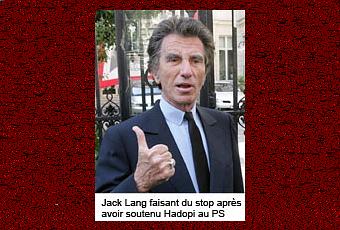 De son coté, le parti socialiste prépare aussi ses armes et présente son argumentaire anti-Hadopi. Soucieux de ne pas voir Pascal Negre finir sa carrière sur la ligne B du RER à faire des tours de chant, Jack Lang appelle au contraire ses futurs-ex-camarades à soutenir le projet de loi. Un beau bordel en perspective donc (l’avantage c’est qu’avec le PS on est un peu habitué).