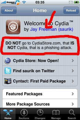 Le Cydia Store est à peine sorti qu’il fait déjà face à un petit souci. Des petits malins ont créé un site web qui leur permet d’attirer l’utilisateur via les moteurs de recherche. Le parcours d’achat est similaire mais totalement faux. Le but là est de récupérer vos comptes et identifiants Facebook, Google et Amazon.