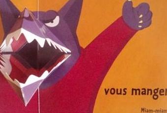 Ce livre par sa page pop-up permet ce soupçon de frayeur appréciable « Miam miam » jusqu’à ce que nous mettions le doigt dans la gueule du loup et que cette gueule de papier soit remise à sa place, à la page précédente, fermée sur un loup tombé dans l’eau.
