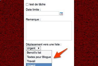 Les concepteurs de ce gestionnaire de tâches ont ajouté une liste déroulante présente dans la fenêtre de détail de la tâche. Cette fonction qui se nomme “Déplacement vers une liste” vous permet de déplacer votre tâche vers une autre liste.