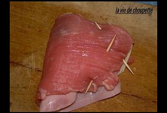 Plier l'escalope en deux et faire tenir avec des pics en bois