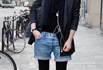 Ce que j'ai bien aimé chez Aurore, c'est le contraste entre la veste de costume boyfriend avec le short en jean et les Minnetonka. Une façon d'être à la fois habillée et décontractée.