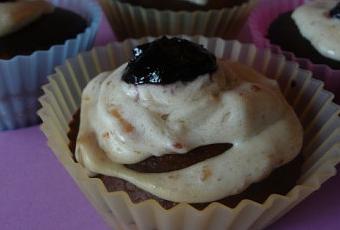 J’avais une vision très précise du résultat que je voulais obtenir, mais que voulez-vous, il y a toujours des imprévus auxquels on ne s’attendait pas … - Surtout en cuisine – Et ma poche à douille m’ayant lâché en route, j’ai dû finir le nappage à la petite cuillère ! Il n’en reste pas moins que mes cupcakes étaient délicieux à regarder et à manger. Les américains ont coutume d’utiliser de la confiture de fraise, mais pour moi, ma préférence s’est portée vers la confiture de myrtille (comme l’ours Gaby).