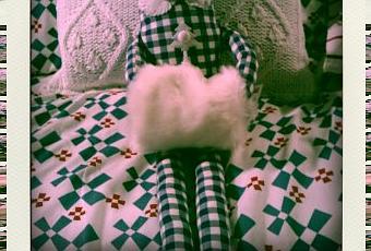 Je viens de recevoir le mien: le numéro 56, vichy bleu avec un petit manchon en fourrure blanche.
