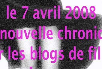 Bon, voilà une belle entrée en matière pour cet avant avant dernier opus de cette chronique... avant de repartir à l'assaut d'un autre angle des blogs de filles. Édifiant, l'angle.