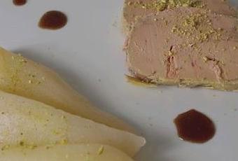 Ce sont des pistaches grillées/salées que j'ai passées au moulin électrique. J'en ai saupoudrées mes poires et mon foie gras. J'ai complété avec un peu de fleur de sel.