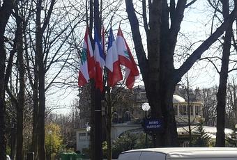 En vrac, les Champs Elysées, l’avenue Marigny, aux couleurs françaises et libanaises, à l ‘occasion de la visite officielle du Général Michel Sleimane, Président de la République Libanaise…