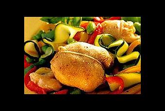 Cuisses de poulets aux petits légumes et à l'ail rose de Lautrec