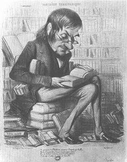 Caricature de Charles Nodier (1780-1844) en bibliomane par Benjami et publiée dans le Charivari.