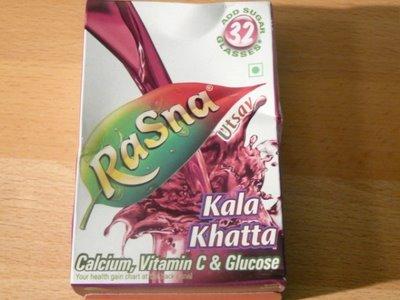 Le kala khatta est un sirop, supposé être au goût des fruits « jambouls », mais à mon avis, ça a un goût 100% chimique. Les golas au kala khatta sont très prisés. Je n’en trouve pas ici et donc, ça a fait partie de ce que j’ai demandé à ma mère.
