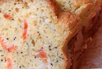 2. Verser la préparation dans un moule à cake recouvert d'une feuille de papier cuisson et enfourner à 180˚ pendant 45 minutes.