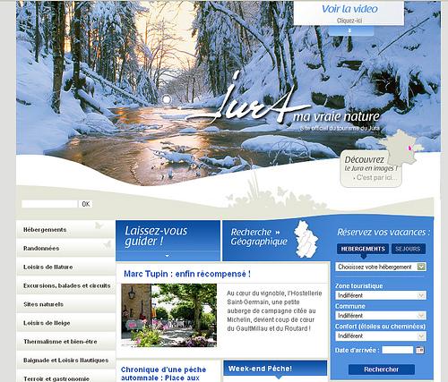Voici un exemple particulièrement parlant avec le site Jura Tourisme, qui fait partie de mes coups de coeurs personnels au passage. Mars arrive avec ses premiers rayons de soleil, on bascule sur la version Eté du site. Au delà d’un simple changement de couleur, c’est toute l’offre présente en page d’accueil qui s’adapte et qui prouve qu’un travail de fond a été mené en amont pour répondre aux attentes de leurs touristonautes. Certainement un bon exemple à suivre, en priorité pour les sites à bi-saisonnalité.