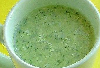 Par ailleurs, faire revenir l'oignon émincé à la poële, avec l'huile d'olive. Le placer, ainsi que les pois cassés, les feuilles de la botte de persil, la gousse d'ail émincée, la crème liquide de soja, dans le bol du mixeur ou du blender. Ajouter de l'eau de cuisson des pois cassés : à hauteur, on obtiendra une consistance épaisse de crème. Mais on peut aussi en mettre davantage pour avoir une consistance plus liquide de velouté.