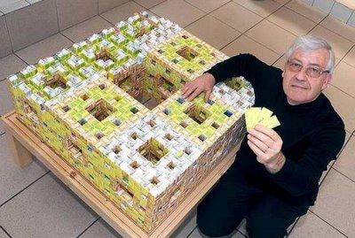 La figure qu'il s'attache à concevoir est une "éponge de Menger",objet fractal,extension en trois dimensions de l'ensemble de Cantor et du tapis de Sierpinski . Aujourd'hui un tiers du cube géant commencé en novembre est déjà réalisé.
