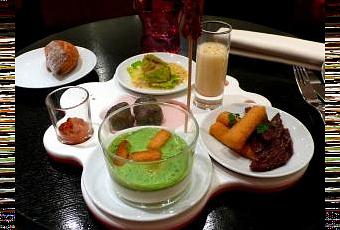 - millefeuilles aux agrumes du Japon et crème de thé Darjeeling Le service évolue de façon efficace et sympathique dans un décor épuré fait de fauteuils profonds, gros coussins, tables en bois et couverts colorés. J’ai particulièrement aimé la sucette de foie gras, très originale -mais trop petite! Si je n’avais pas passé 5 minutes à prendre le plateau en photo, j’aurai aussi dégusté chaud (quand j’ai attaqué certains plats l’étaient moins malheureusement). Le millefeuille aurait mérité d’être plus gros. C’est peut-être le seul problème avec cette formule: c’est tellement bon que les portions en deviennent un peu trop petites! Le déjeuner a duré, montre en main, 55 minutes, et je suis sortie non seulement rassasiée mais aussi ravie d’avoir pu, pour un tel prix, me faire plaisir et essayer un lieu aussi prestigieux. Merci Hélène Darroze. PS: certains critiques estiment que son restaurant, bon et plaisant, ne mérite pas ses étoiles. Voir la vidéo du critique François Simon notamment. Voir mes photos sur Flickr. Restaurant Hélène Darroze: 4 rue d’Assas. Métro: Sèvres Babylone. Tel: 01 42 22 00 11. Mail: [email protected]. Déjeuner de 12h30 à 14h30. Réservation fortement conseillée. Posted in Intemporel Tagged: déjeuner, françois simon, gastronomique, hélène darroze, michelin, plateau déjeuner, rue assas