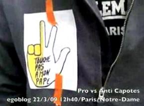 Voici donc ce que certains nervis d’extrême droite, venus faire le coup de poing, arboraient sur le parvis de Notre Dame aujourd’hui.