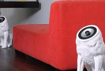 Woofers des enceintes pour le moins insolite avec un corps de chien assis mais à la place de sa tête des haut-parleurs d’une puissance totale de 180 watts (RMS) disponible en blanc et noir. Création de Sander Mulder un designer reconnu dans son domaine.