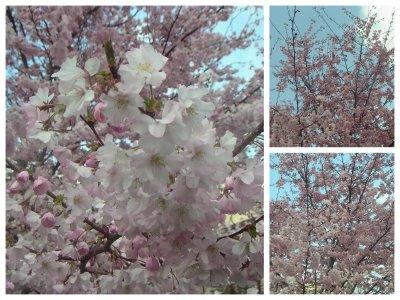 Quand le printemps pointe le bout de son nez les arbres deviennent magnifiques. De loin on a l'impression de voir des pompons roses et quand on s'approche on s'aperçoit qu'en fait de pompons ce sont des délicates fleurs roses et blanches.