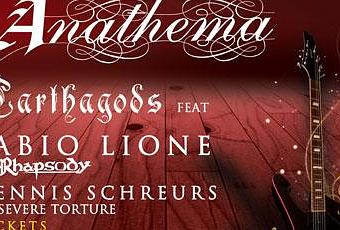 Je pense qu'il n'est pas vraiment nécessaire de vous présenter ANATHEMA ! Carthagods auront aussi le plaisir de partager la scène avec Fabio Lione, chanteur de Rhapsody et reprendre des titres d'Iron Maiden et de Judas Priest, avec l'un des chanteurs de heavy metal les plus respectés au monde! Dennis, le chanteur du groupe Hollandais Severe torture, rejoint aussi les Carthagods pour d'autres surprises !!! Le son et la lumière seront assurés par la société Sybel, l'un des plus grands noms du secteur en Tunisie !