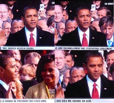 Trêve de plaisanteries. Mes impressions en vrac et en images :j'ai été émue par : son sourire franc/sa famille confiante/sa foi/ces millions d'américains rassemblés pour lui/son serment/la ferveur de la foule/l'émotion vive/le moment historique/sa classe et sa prestance/son discours/ sa personnalité/son courage/sa volonté/son engagement/son franc parler