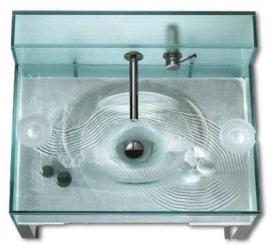 Aquarium Sink : Mi-aquarium, mi-lavabo, une rencontre à la fois design et originale. Vous accéder à vos poissons par les deux trappes de chaque coté de l’évier aisément dissimulables par un porte savon par exemple.