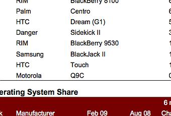 Admobs Mobile a récemment publié quelques statistiques aux USA concernant les usages de l’internet mobile. Il est intéressant de remarquer que malgré la jeunesse de la plateforme et l’existence d’un seul terminal sur le marché (HTC G1 Dream), la montée est significative et au dépasse rapidement des best-sellers outre Atlantique (Motorola Q9, Samsung Blackjack-i600).