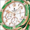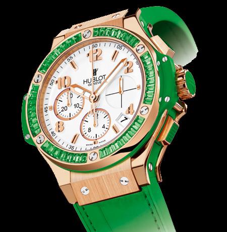 Un air de fruit défendu, séduisant, frais et pimpant ! La Big Bang Apple, précieuse et lumineuse avec sa lunette sertie de Tsavorites et son boîtier en or rose ou céramique noire, porte un bracelet en alligator doublé de caoutchouc. Fusion d’émotions, de matières et de couleurs, le chronographe « Big Bang Apple » pourrait bien être « à croquer » !