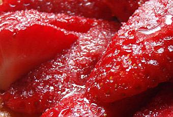 3. Quand le fond de tarte est cuit et froid, repartir les fraises bien serrées les unes contre les autres, napper avec le coulis froid et soupoudrer enfin avec le reste du sucre.