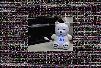 Voici un hub usb qui a l’air sympathique ! ce Teddy Bear, en plus de faire hub usb, possède une petite horloge illuminé sur son ventre