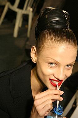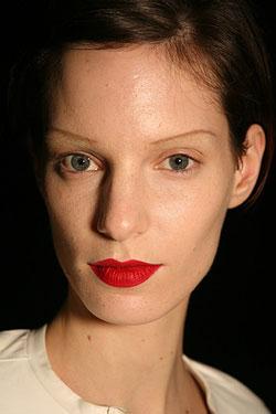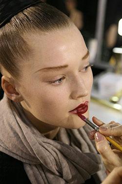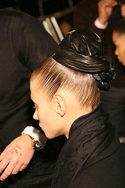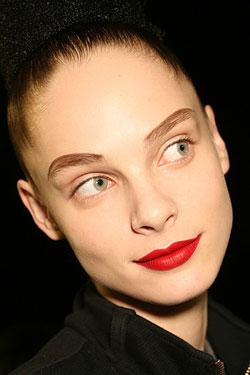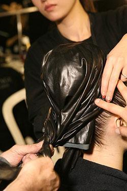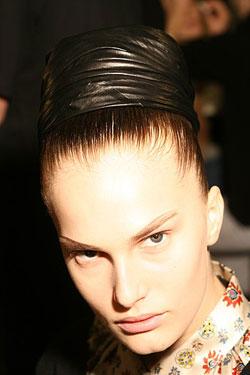 Yves Saint Laurent a impressionné. Non pas par le maquillage, mais bien par la coiffure. (Une spécialité de la maison ?). Toutes les rédactrices mode ont été sous le charme de ces chignons en cuir, à la rencontre des 80's et du néo-futurisme. Source photo : wwd.com