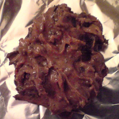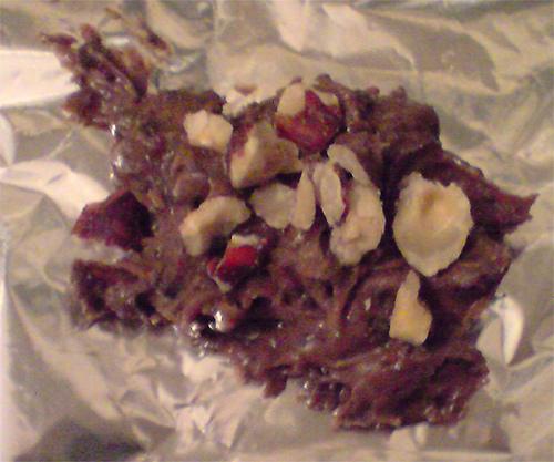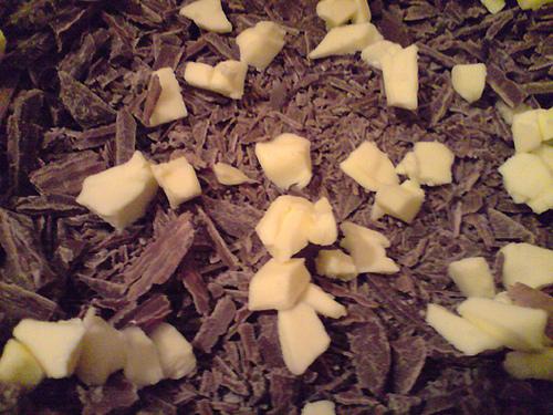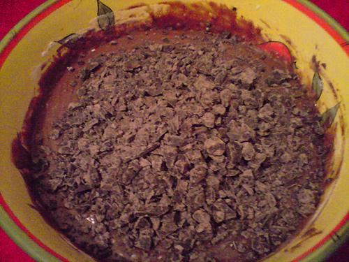 14 - …niak, d’un autre côté on a fracassé en grosses miettes le chocolat noir pour faire des pépites :)