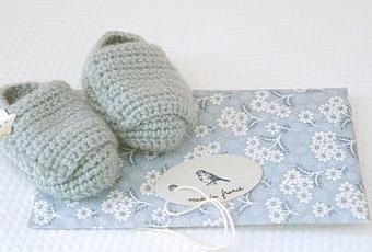 Ces mignons petits chaussons au crochet m'ont été offert par Sophie alias Pamelapopo, pour mon Léon. Un très beau cadeau que j'ai reçu dans un emballage particulièrement soigné. Sophie vend quelques unes de ces très jolies créations et découvertes dans sa boutique Etsy "Made in France".