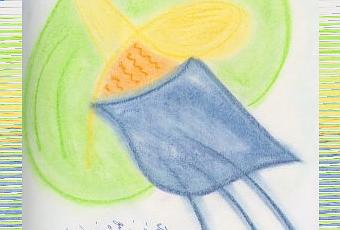 Ce matin, c'était mon cours de journal créatif avec mon animatrice. Quel bel atelier! Entre autres, nous avons fait une série de dessins intuitifs. Le thème du premier était "Je cible un besoin personnel". On choisit des couleurs selon notre goût du moment, puis on se laisse aller à dessiner n'importe quoi. Ensuite, on tourne le dessin de tous les côtés pour voir s'il nous parle, toujours en gardant en tête notre thème. En le tournant de la manière dont il est présenté ici, je voyais facilement un oiseau bleu, un poisson jaune qui sautait du lac orangé et une étendue de verdure tout autour. Pour moi, le message était criant: mon besoin personnel est la liberté.Et non, la liberté ne veut pas dire vivre seule sans contrainte de travail, des enfants ou des amis dans une cabane dans la forêt. Ça veut juste dire qu'on se sent libre en dedans. Fort heureusement, on peut très bien se sentir libre alors qu'on est entourée des bras de son conjoint, sinon, ouf, quelle tristesse! Alors voilà une de mes découvertes de ce matin. Vous devriez essayer, c'est vraiment stimulant.