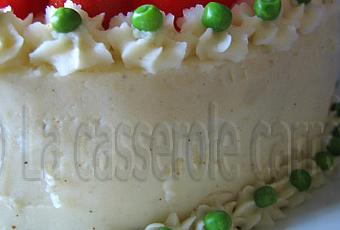 Recouvrir la purée du second pain de viande et utiliser le reste de la purée pour recouvrir le gâteau de façon uniforme.