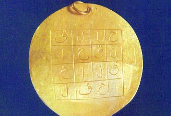 Lors d’une brève escale en Palestine en rentrant de Dubaï, j’ai pu aller à l’université de Bir Zeit. Je connaissais déjà sa Galerie Virtuelle, où on retrouve le travail des principaux artistes palestiniens et j’ai visité son Musée. La partie ethnographique comprend une collection de talismans et d’amulettes tout à fait étonnante, rassemblée par un ‘médecin des pauvres’ et ethnographe, le Dr Tawfik Canaan, au début du XXème siècle. Ci-contre un ‘carré magique’ recueilli en 1914 à Jérusalem.