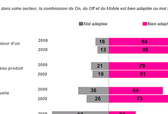 Réalisée conjointement par PagesJaunes, l’Union des annonceurs (UDA) et TNS Sofres, cette étude barométrique, dédiée à la communication multicanal croise le regard des annonceurs et des consommateurs sur les campagnes privilégiant des stratégies de mix média. L’édition 2009 révèle notamment les enjeux et les priorités des annonceurs dans un contexte économique difficile. Vous trouverez les résultats du baromètre on-off-mobile et leurs analyses sur le site de notre Observatoire PagesJaunes (http://www.on-off-mobile.fr/comportement_accueil.html, les résultats en pdf sont à la fin de l’article).