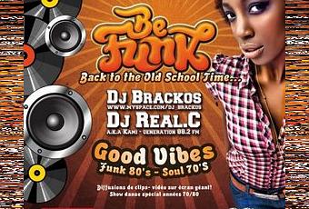 BE FUNK LA GROSSE SOIREE FUNK REVIENT LE VENDREDI 17 AVRIL 2009 POUR SON DEUXIEME VOLET AVEC NOTRE DJ STAR/DJ BRACKOS GRAND SPECIALISTE DE LA FUNK 80'S QUI VOUS FERA VIBRER/GROOVER TOUT AU LONG DE LA NUIT GRACE A DES SETS DE FOLIES/INFLUENCE PAR DES LABELS COMME SOLAR/PRELUDE/ATLANTIC QUI ONT CONNU LEURS HEURE DE GLOIRE GRACE A UNE MULTITUDE D'ARTISTES PLUS TALENTUEUX LES UNS QUE LES AUTRES...IL SERA SECONDE PAR DJ REAL C (GENERATIONS 88.2) CHEF D'ORCHESTRE DE L'EMISSION DO ME RIGHT TOUS LES DIMANCHES SUR 88.2/ IL VIENDRA APPOSER SA TOUCHE PERSONNELLE DE SETS SOUL 70'S QUI VOUS TRANSPORTERONT A UNE EPOQUE HORS DU COMMUN OU LA MUSIQUE SE RESSENTAIT AVEC L'ÂME ET LE COEUR/VOUS CONNAITREZ UNE VIBE QUE VOUS N'OUBLIEREZ JAMAIS CELLE DE LA OLDSCHOOL TIME!!!