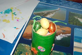 découpé un morceau de carton pour faire le fond qu'elle a collé