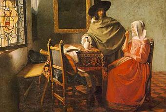 Vermeer épure progressivement jusqu’à l’extrême pour n’en retenir que la structure interne reliant harmonieusement êtres et objets au sein d’un même espace restreint baigné par la lumière naturelle.