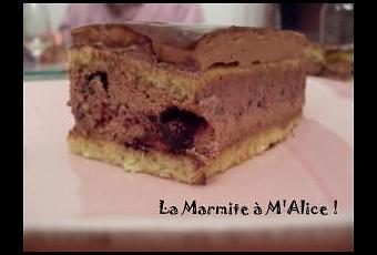 Un biscuit léger aux amandes, une crème fouettée au chocolat juste dosée, des myrtilles natures, un petit glaçage chocolat noir... Un vrai régal... La fraîcheur des myrtilles se marie étonnament bien au chocolat !