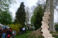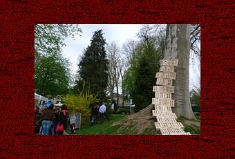 Photos : Une structure en cagettes du collectif d'architectes La Girafe. Les trois pin up XXL qui égayaient les allées du Forum du développement durable, samedi, dans les jardins de la préfecture.