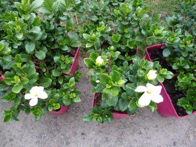 Je l'avais repéré l'an dernier, mais le pépiniériste n'avait que quelques pieds, qui sont partis très vite. Cette année, je suis allé le réserver dès l'ouverture de la manifestation, pour être sûr de repartir avec un beau pied.Ce gardénia (Gardenia jasminoides 'Kleim's Hardy') peut supporter des températures minimales de -12 °C paraît-il, ce qui en fait une plante parfaitement rustique pour Paris où les températures tombent exceptionnellement en dessous de -8 °C. Cet arbuste d'ornement à feuillage persistant brillant se cultive comme un camélia, à mi-ombre claire sans soleil brulant, dans un sol bien drainé et sans calcaire actif (terreau acide ou terre de bruyère). Le pied que j'ai acheté est couvert de boutons floraux, mais la floraison en place est plutôt estivale.