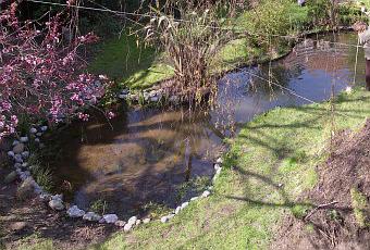 - Si c’était à refaire, la zone de baignade serait plus grande et on n’aurait pas hésité à déplacer le phormium tenax (la grande plante au niveau du rétrécissement) et à mettre la terre plus loin dans le jardin.