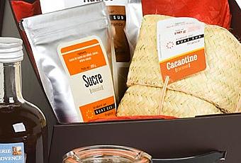 Ce coffret chocolaté fait bien sûr partie du ”volet” Gourmandise… Il est composé d’un sirop au chocolat à verser sur tout ce que vous voulez, d’une tisane Chocolat Addict, d’un sucre au chocolat totalement divin, d’un confit chocolat-banane-amande de fabrication artisanale, exquis, et de cacaotines au caramel, addictives au possible! Ce sont des produits de grande qualité, on pourrait presque parler de luxe… A déguster sans modération!