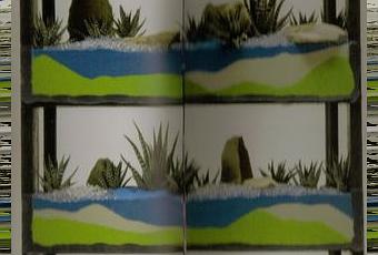 Roger Blumstein a planté dans cette structure de verre et métal des cactées tout en céant ces vagues de sable coloré, c'est très beau.