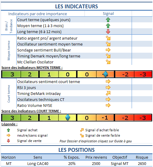 Nous sommes donc sur la zone support C5 tant attendue. Nous restons au dessus après une correction de 5% les traders agressifs peuvent tenter l'achat sur le niveau. Pour notre part nous restons sur la touche à cause du long week end qui arrive mais surtout a cause du manque de signaux. Ce genre de dilemme est difficile à gérer. Nous sommes sur un support majeur sans signe d'excès mais pour avoir ces signes nous devons probablement casser le support. Il faudra donc gérer en temps réel en prenant en compte qu'une cassure de C5 renverrait probablement proche de M2.