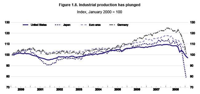 Je vous rappelle que les prévisions pour l'Allemagne ( en gros 30% du PIB de l'UE) sont assez cataclysmiques: On parle de 5 millions de chômeurs à la fin 2010. Et dans ce rapport de l'OCDE diffusé depuis environ 10 jours, on trouve de bien belles courbes qui vont éviter des tonnes de discours.