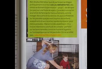 Rien de plus libérateur que de participer au blogue politiquement incorrect Les (Z)imparfaites: des mères se donnent la permission - youpi! - de déraper (un peu) sur une foule de sujets. Ça va des trucs qu'on se promet de faire après l'accouchement, comme manger des sushis en buvant du vin, aux confidences sur les pensées que peuvent inspirer des enfants exaspérants et aux recettes rapides à préparer pour mères pressées. Hilarant et déculpabilisant. On y trouve néanmoins une foule de conseils - parfaits - sur les bons remèdes contre le rhume et la gastro ou l'antiseptique qui ne fait pas bobo. On ne se refait pas...
